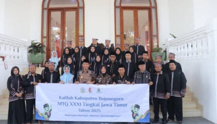 BOJONEGORO, Harnasnews – Suasana penuh semangat menyelimuti Pendopo Malowopati, Jumat (12/9/2025), ketika Bupati Bojonegoro, Setyo Wahono, didampingi Ketua LPTQ (Lembaga Pengembangan Tilawatil Qur’an) Kabupaten Bojonegoro yang juga Wakil Bupati, Nurul Azizah, secara resmi memberangkatkan 23 kafilah terbaik Bojonegoro untuk mengikuti ajang bergengsi Musabaqah Tilawatil Qur’an (MTQ) XXXI tingkat Provinsi Jawa Timur yang digelar di Kabupaten Jember pada 12–19 September 2025.