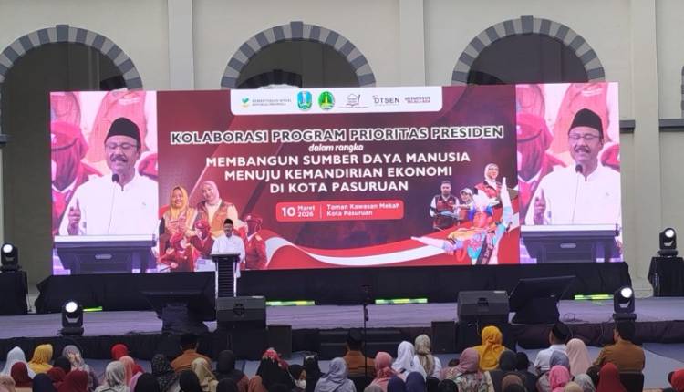 PASURUAN, Harnasnews — Menteri Sosial Saifullah Yusuf atau Gus Ipul menghadiri kegiatan Kolaborasi Program Prioritas Presiden dalam rangka Membangun Sumber Daya Manusia Menuju Kemandirian Ekonomi di Taman Kawasan Mekkah, Kota Pasuruan, Provinsi Jawa Timur pada Selasa (10/3/2026). Kegiatan ini juga diisi pembagian paket sembako bagi 1500 KPM yang hadir di Masjid KHAS Pasuruan.