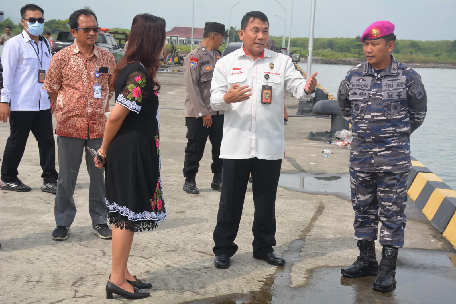 Staf Ahli Bidang Dawilmar Kemenkopolhukan Laksda TNI Antongan Simatupang juga menyampaikan dalam rapat tersebut bahwa Pelabuhan menjadi konsen kami supaya terwujudnya visi misi Presiden RI.Tidak lupa juga disini ada TNI AL yang mana adalah keamanan laut, merupakan penyidik di laut, akan sangat dominan kedepanya bilamana hal-hal yg terkait kelautan bisa saling berkoordinasi. Agar terciptanya kelancaran dan keamanan Laut.