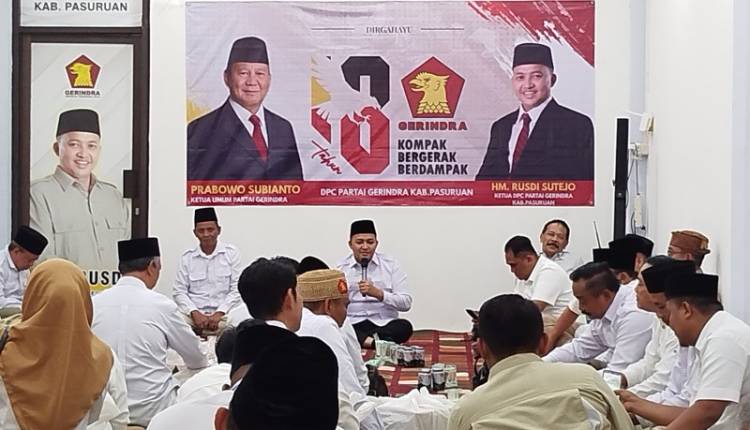 “Kita gelar secara sederhana, hari ini rangkaian kita gelar tasyakuran di kantor DPC Gerindra Kabupaten Pasuruan dengan berbagi bersama anak yatim serta potong tumpeng,” ucap Ketua DPC Partai Gerindra, H. Rusdi Sutejo.