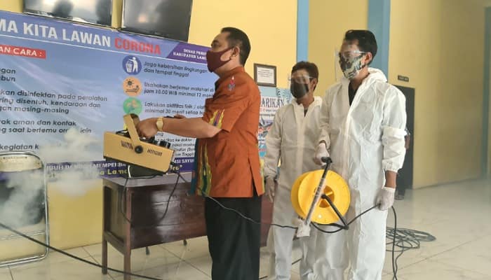 Kepala Dinas Perikanan dan Kelautan Kabupaten Lamongan, Drs. M. S. Heruwidi, M.M., mengatakan jika kegiatan fogging disinfektan ini sebagai upaya untuk mencegah penyebaran Covid-19 di tempat pelayanan publik.