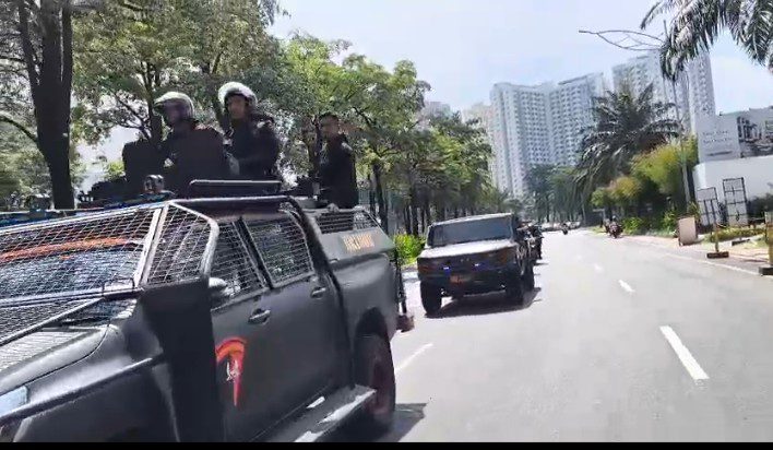 Kendaraan taktis dari BKO Brimob Polda Metro Jaya serta Maung dari TNI nampak ikut serta dalam patroli. Personil juga dibekasi dengan senjata lengkap termasuk gas air mata. (Mam)