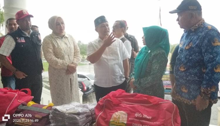 Aceh Utara, Harnasnews – Istri Gubernur Aceh, Marlina Usman, bersama Dinas Sosial Aceh (Dinsos) dan Badan Penanggulangan Bencana Aceh (BPBA), menyalurkan bantuan masa panik bagi warga terdampak banjir di Kabupaten Aceh Utara, Selasa (25/11/2025).