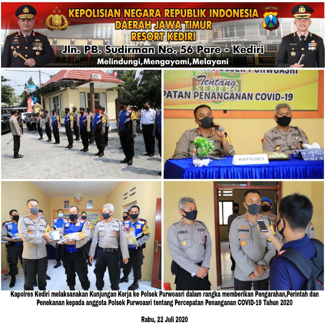 KEDIRI, Harnasnews.com – Kepala Kepolisian Resort (Kapolres) Kediri AKBP Lukman Cahyono melaksanaka Kunjungan Kerja (Kunker) ke Polsek Jajaran Polres Kediri dalam percepatan penanganan Covid-19, pada hari rabu (22/07/2020).