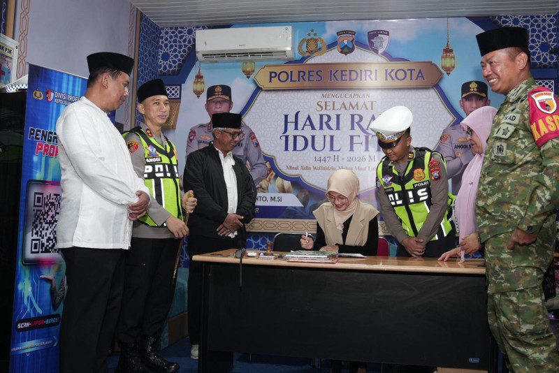 KEDIRI KOTA,Harnasnews  – Kapolres Kediri Kota AKBP Anggi Saputra Ibrahim, S.H., S.I.K., M.H. bersama Ketua Bhayangkari Cabang Kediri Kota Ny. Yani Anggi mendampingi rombongan Forkopimda Kota Kediri dalam kegiatan peninjauan Pos Pengamanan (Pospam) dan Pos Pelayanan (Posyan) Operasi Ketupat Semeru 2026 pada malam takbir Idul Fitri, Jumat (20/3/2026) malam.