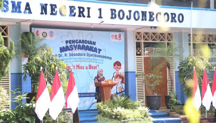 BOJONEGORO,Harnasnews – Bupati Bojonegoro Setyo Wahono di dampingi Ketua TP PKK Cantika Wahono Hadir dalam acara Pengabdian Masyarakat dalam rangka World Heart Day 2025 dengan Tema “Don’t Miss a Beat” yang di selenggarakan oleh RSUD Dr. R. Sosodoro Djatikoesoemo, Kamis (25/9) di SMA Negeri 1 Bojonegoro.