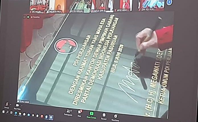 PASURUAN, Harnasnews.com – Ketua Umum PDI Perjuangan Megawati Soekarnoputri meresmikan kantor DPC, DPD PDI Perjuangan se-Indonesia secara Virtual, salah satunya kantor DPC PDI P Kabupaten Pasuruan pada Hari Rabu (22/07/20).