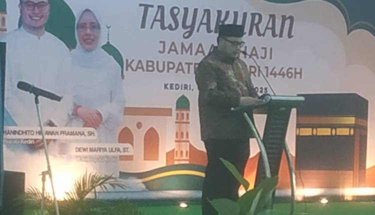 Dalam sambutannya, Hanindhito Himawan Pramana, S.H. Bupati Kediri menyampaikan rasa syukur atas kembalinya seluruh jemaah haji dengan selamat, setelah menunaikan ibadah di Tanah Suci dengan lancar dan tertib.