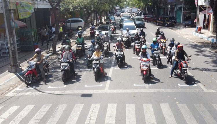 Pembuatan marka ini dalam rangka uji coba penerapan Physical Disthancing bagi R2 dan R4 saat berhenti menunggu serta menaati rambu lalu lintas di era New Normal di wilayah Kota Pasuruan.