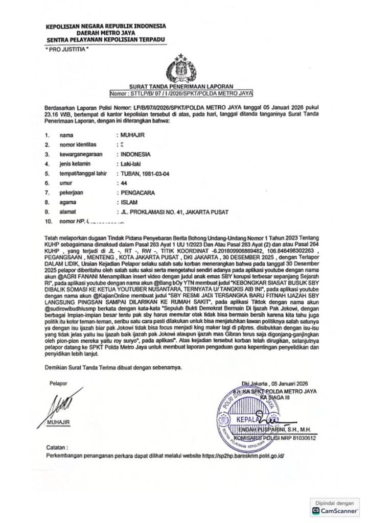 “Karena somasi tidak diindahkan, maka dua akun semalam dilaporkan karena telah melakukan fitnah soal SBY di belakang isu Ijazah Palsu Jokowi. Padahal, somasi itu kesempatan untuk tabayyun,” ungkap Andi Arief seperti dikutip dari akun pribadinya @Andiarief- Rabu (7/1/2026).
