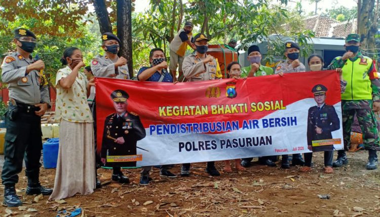 PASURUAN, Harnasnews.com – Polres Pasuruan kembali melaksanakan giat bhakti sosial di tengah pademi covid-19 dengan menyalurkan bantuan air bersih masyarakat Lumbang yang dilanda kekurangan air bersih.