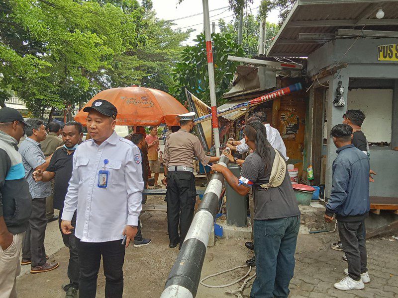 KOTA BEKASI, Harnasnews.com – PT. Mitra Patriot kembali melakukan penutupan gate milik Paguyuban Ruko Sentra Niaga Kalimalang (RSNK) yang berlokasi di jalan Tawes Raya, Bekasi Selatan Kota Bekasi pada Senin 8 September 2025.
