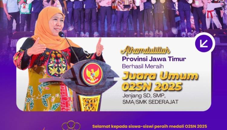 “Alhamdulillah, Jatim kembali menorehkan prestasi gemilang. Perolehan sebagai Juara Umum O2SN 2025 ini merupakan bukti kerja keras, kedisiplinan, serta semangat juang para siswa kita. Hal ini sekaligus menunjukkan bahwa pembinaan olahraga di Jatim berjalan sangat baik dan kompetitif,” ujar Gubernur Khofifah di Surabaya, Minggu (23/11).