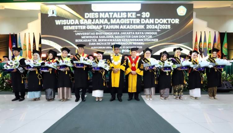 KOTA BEKASI, Harnasnews.com – Universitas Bhayangkara Jakarta Raya (UBJ) menggelar Dies Natalis Ke-30 serta Wisuda Sarjana, Magister dan Doktor Semester Genap Tahun Akademik 2024/2025, Rabu (01/10/2025).