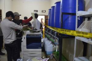 Di dalam gudang dan tempat produksi juga nampak drum puluhan drum besar serta perlengkapan lain. Rumah yang dijadikan tempat produksi dan gudang itu juga diketahui sangat tertutup bagi umum, sehingga tidak diketahui secara pasti aktivitas yang terjadi di dalam.
