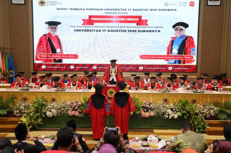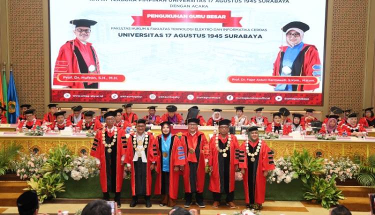 SURABAYA, Harnasnews – Universitas 17 Agustus 1945 (Untag) Surabaya kembali mengukir tonggak penting dalam dunia akademik dengan dikukuhkannya dua Guru Besar baru dalam Rapat Terbuka Pimpinan Untag Surabaya yang digelar di Auditorium Suparman Hadipranoto, Grha Wiyata lantai sembilan, Selasa, (16/9).